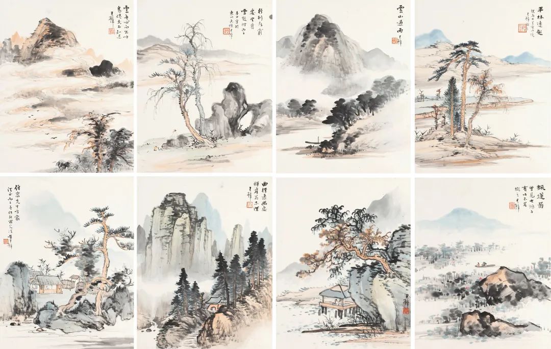 《仿古山水册》共八开,每幅作品都体现了黄君璧对古代山水画技法的精湛掌握和独到创新。