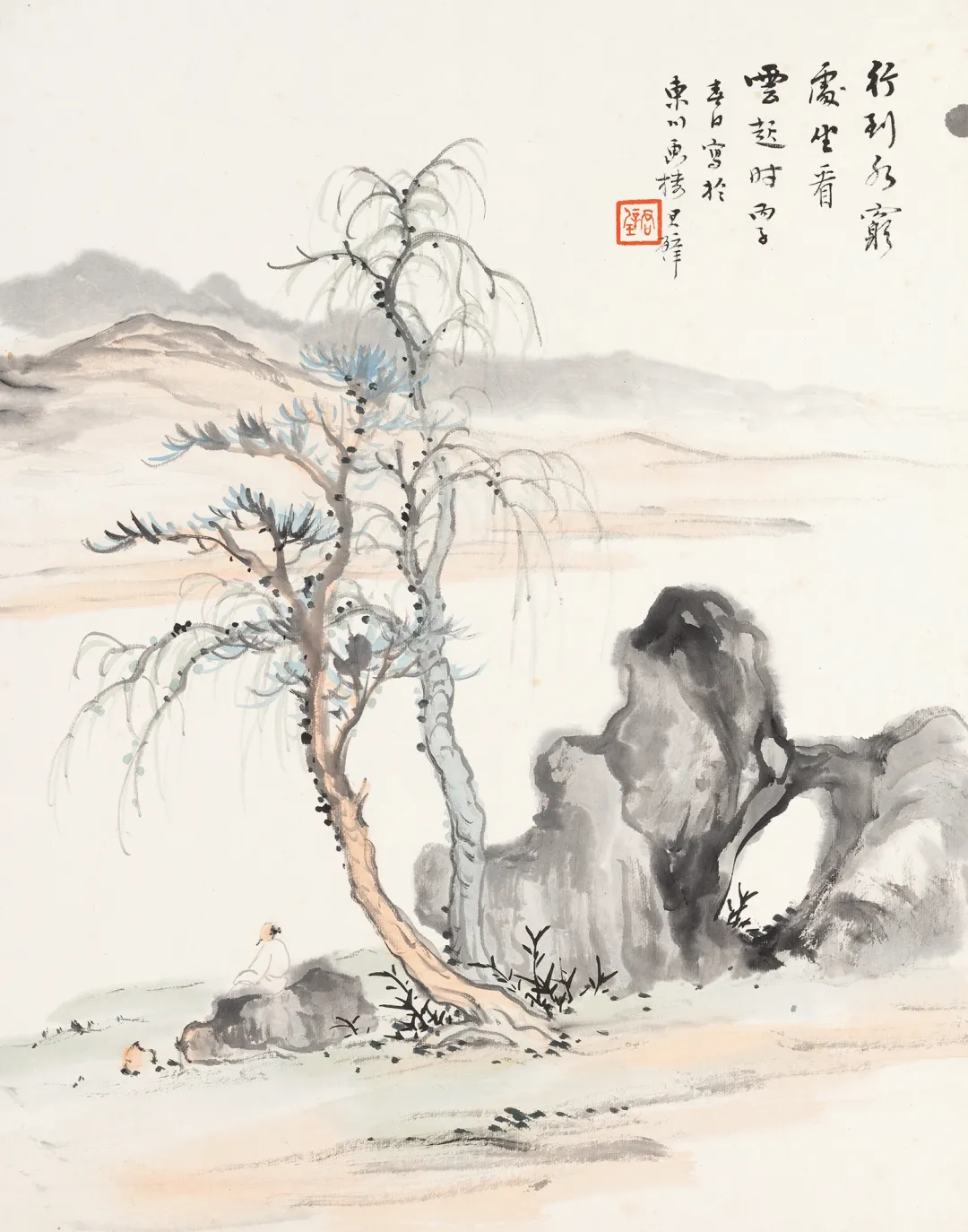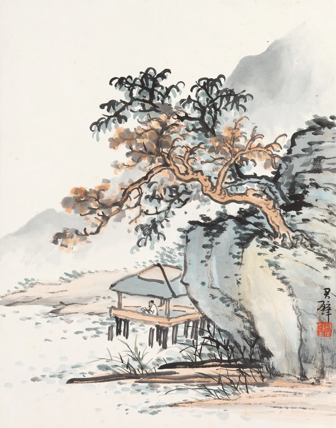 黄君璧《仿古山水册》是画家黄君璧于1936年创作的一幅山水册页作品,展现了其深厚的传统功底和对古代山水画的深刻理解与传承。