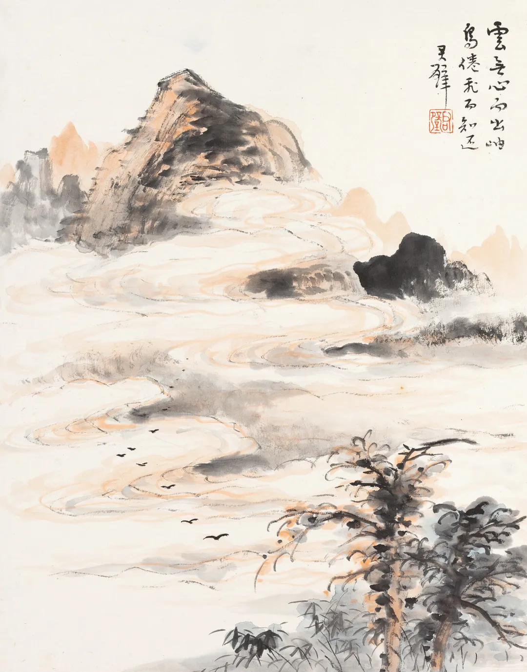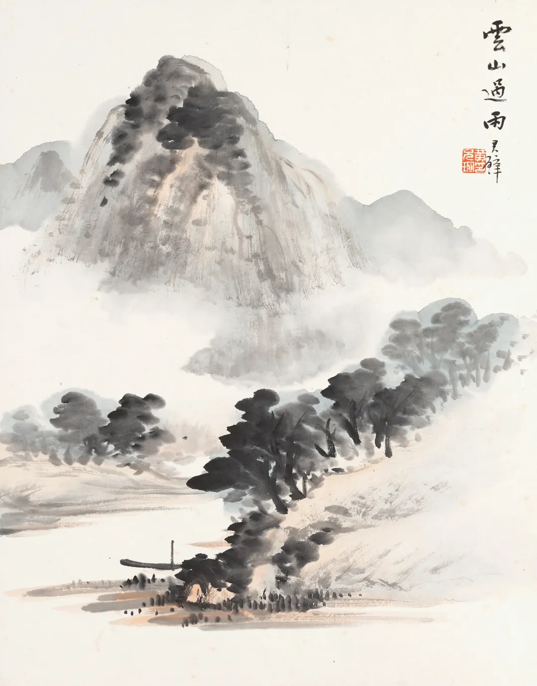 云山过雨:画面可能描绘了雨后云雾缭绕的山峦,展现了黄君璧对云水变化的敏锐捕捉和生动表现。