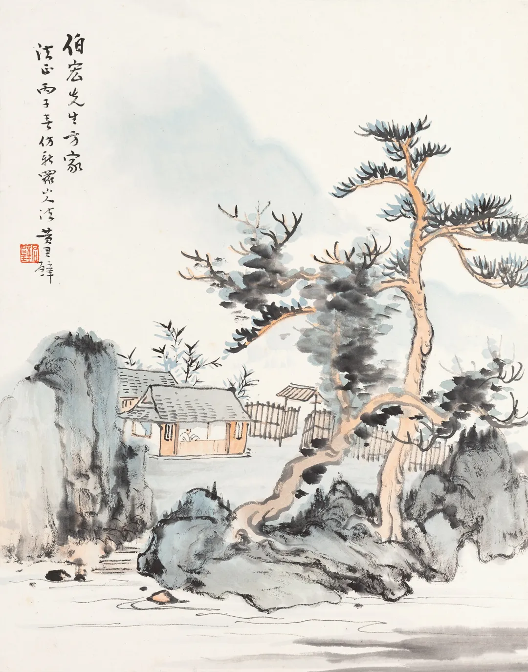 伯宏先生方家法正。丙子春,仿新罗山人法,黄君璧:此幅可能是为伯宏先生所作,并标明仿照新罗山人(华喦)的技法。