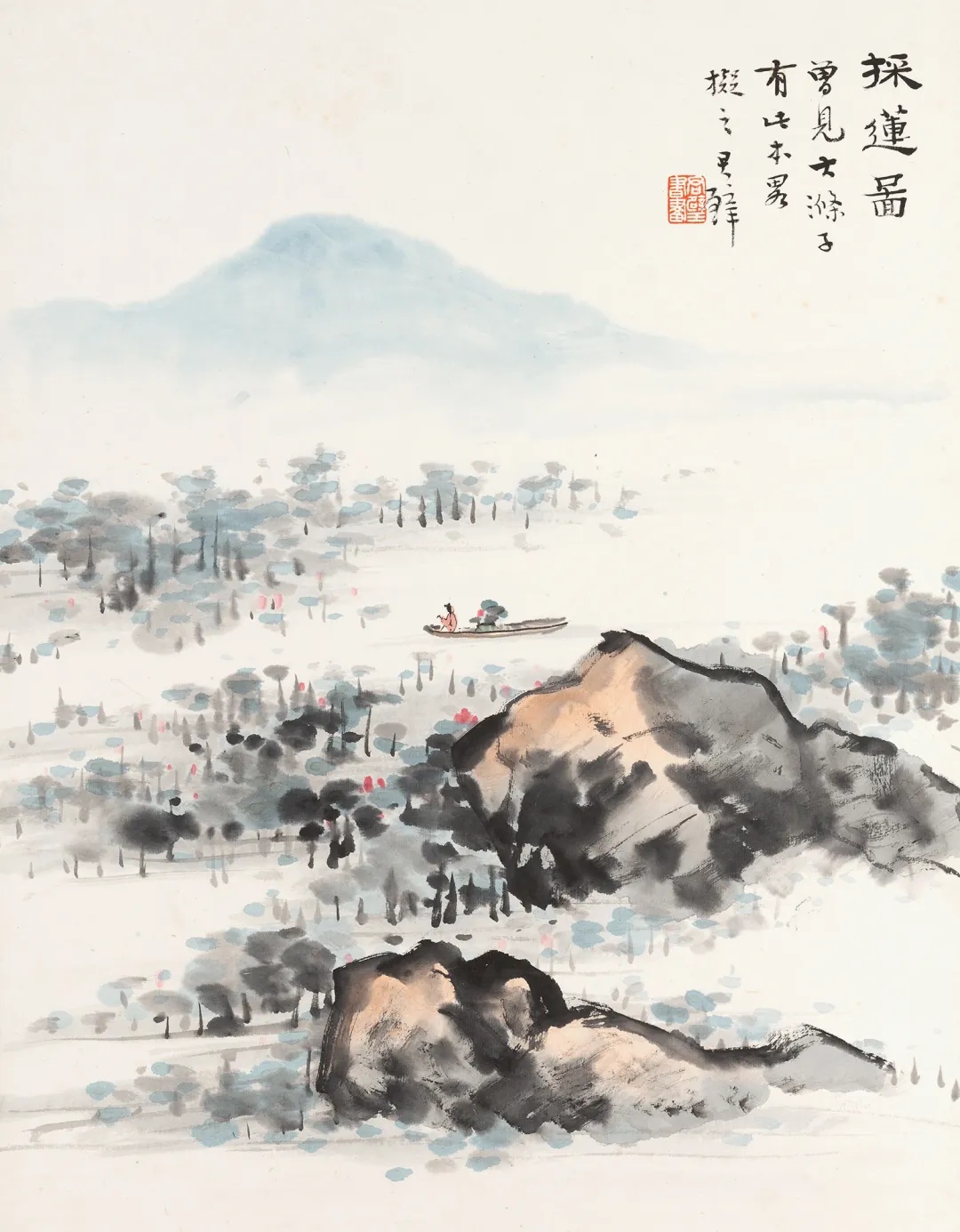 采莲图:画面可能描绘了江南水乡采莲的情景,展现了黄君璧对自然生活的细腻观察和生动表现。